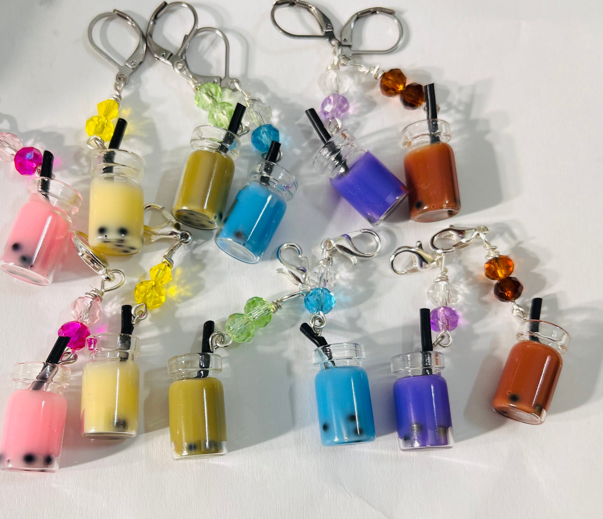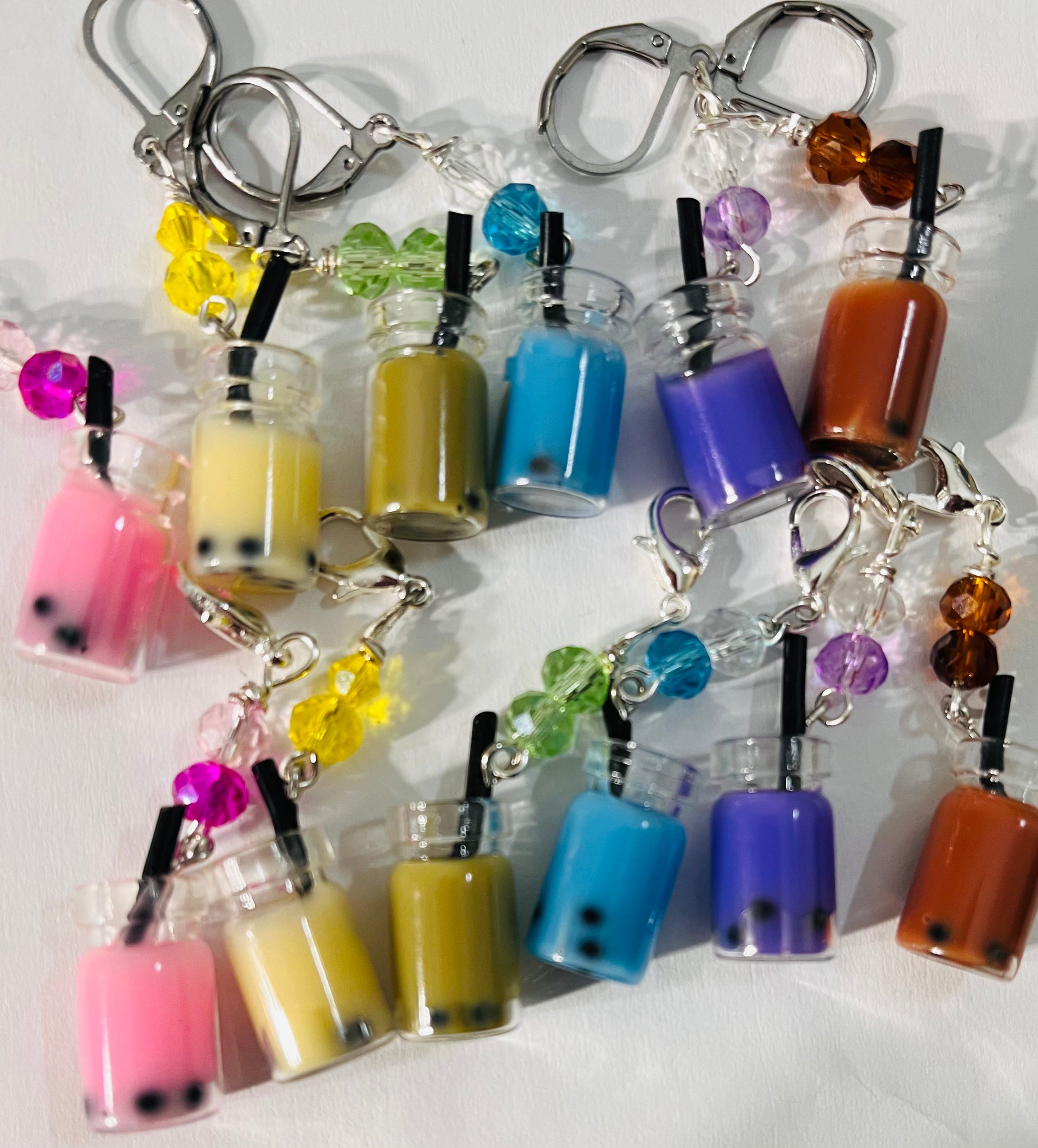 3D bubble tea charms. With both lobster clasps and lever back holders.
