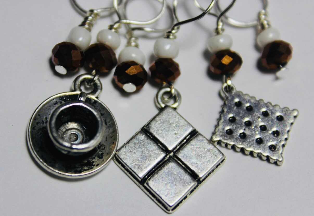 This set of six markers is shaped with silver wire will fit up to a US11 (8.0mm) knitting needle, with no exposed ends to snag your knitting.