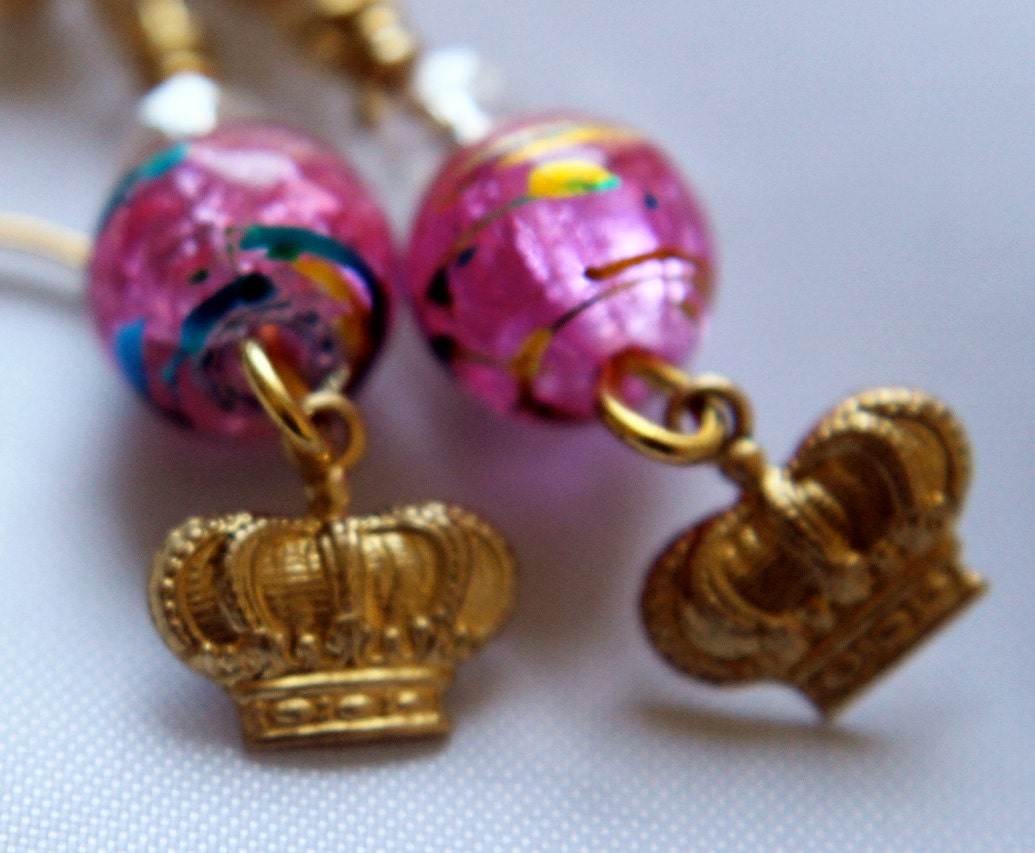 Cordelia Chase, Queen C. ruler of Sunnydale high with a perfect hairdo and heels. She will destroy vampires with her words and look good while doing it. These earrings have light weight gold tone crown charms and pink beads.