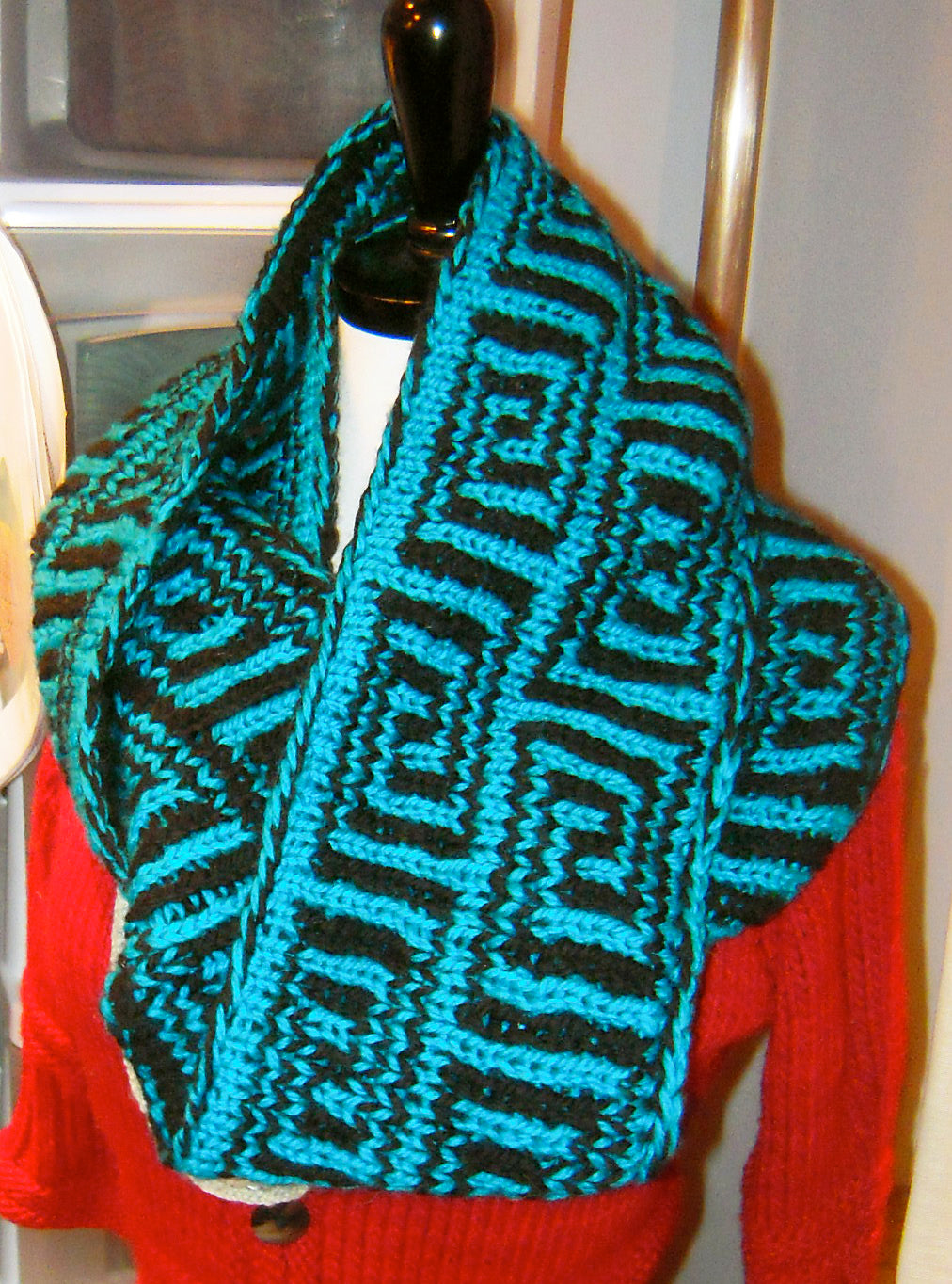 One size fits all knitting scarf/cowl. Using Bulky (7 wpi) gauge is 10 stitches and 22 rows = 4 inches using US 10½ - 6.5 mm. Uses approx. 250 yards (229 m) of yarn.