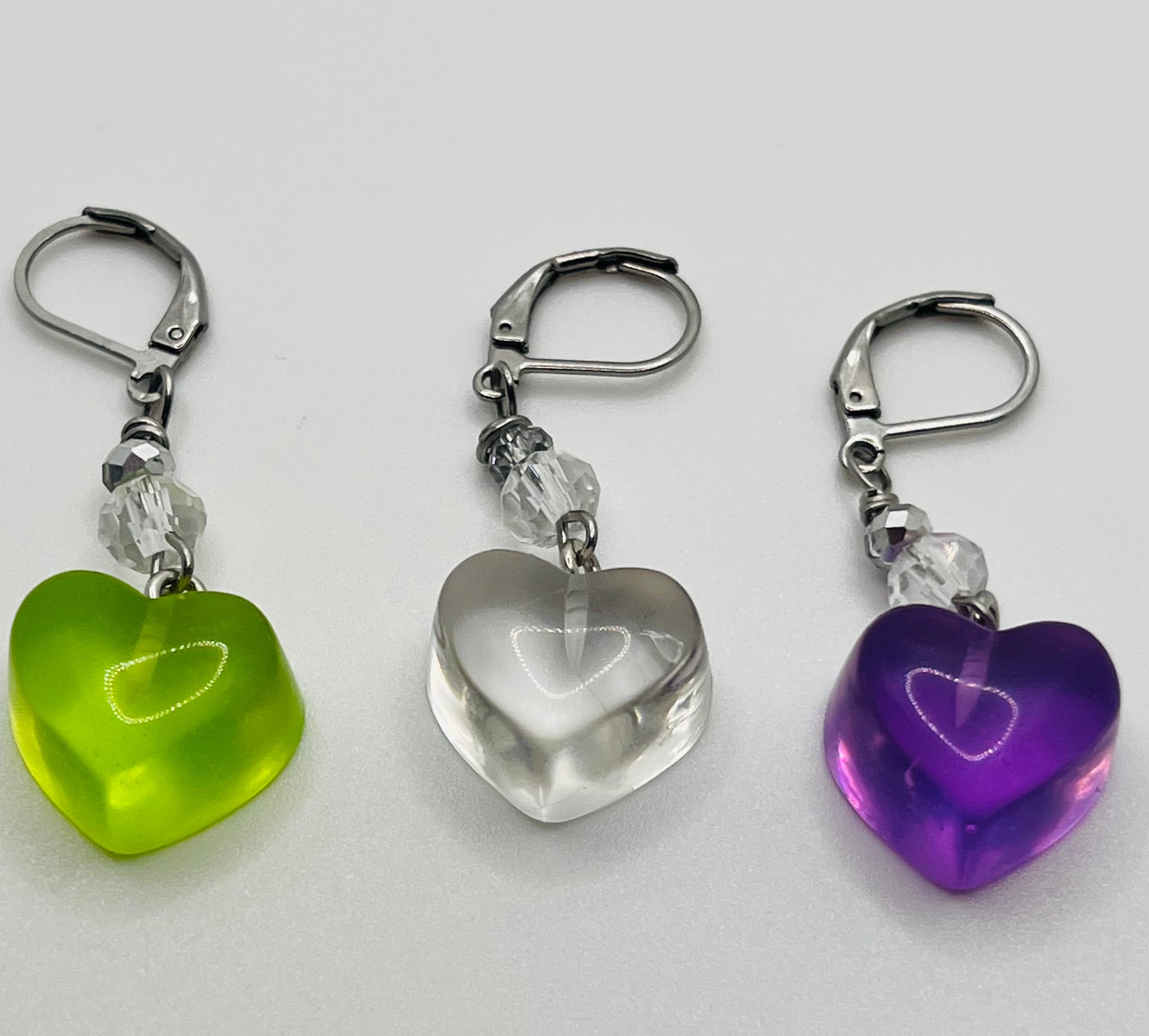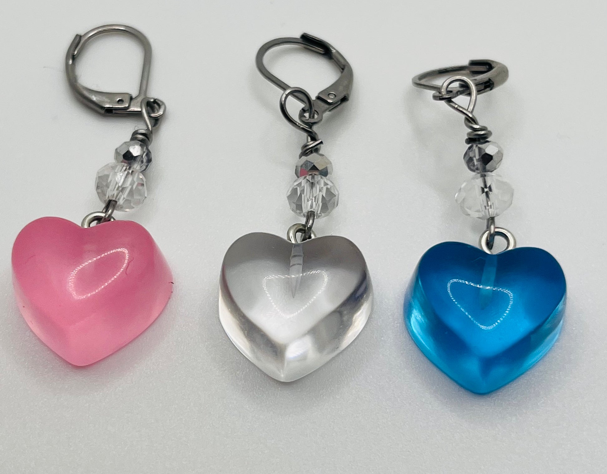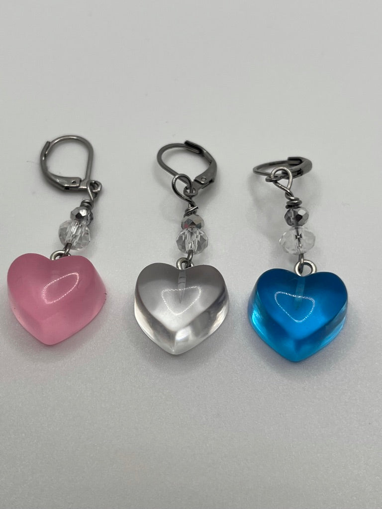 Gummy Heart Charms in the style of various Pride flags in heart form for Crochet.