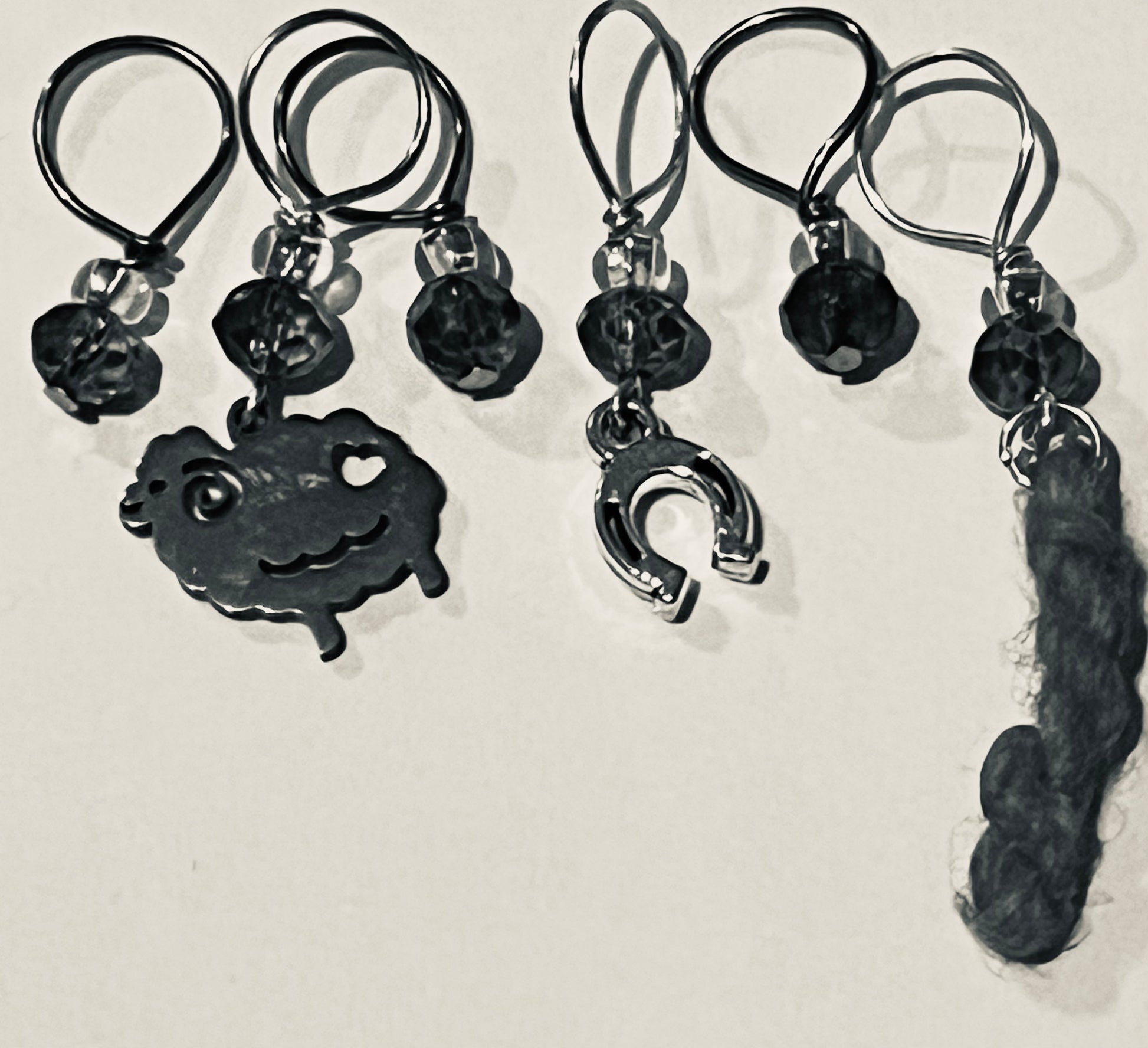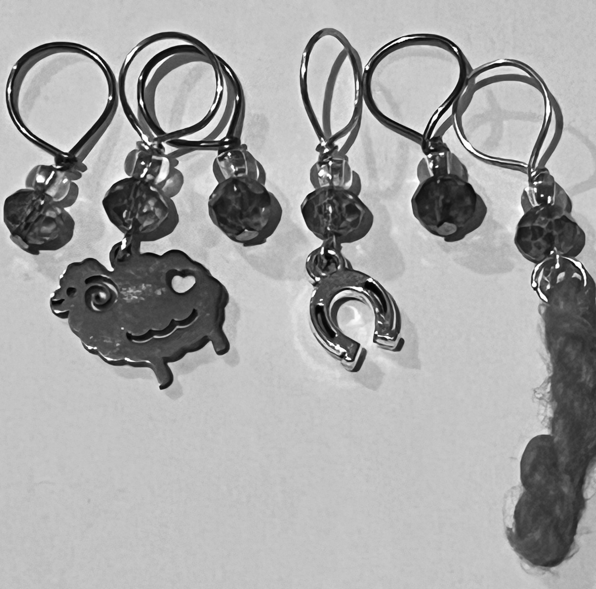 The exclusive show set with a sheep charm, skein of yarn and horseshoe, for our vending location. This set of 6 markers is only available through Indie Untangled.
